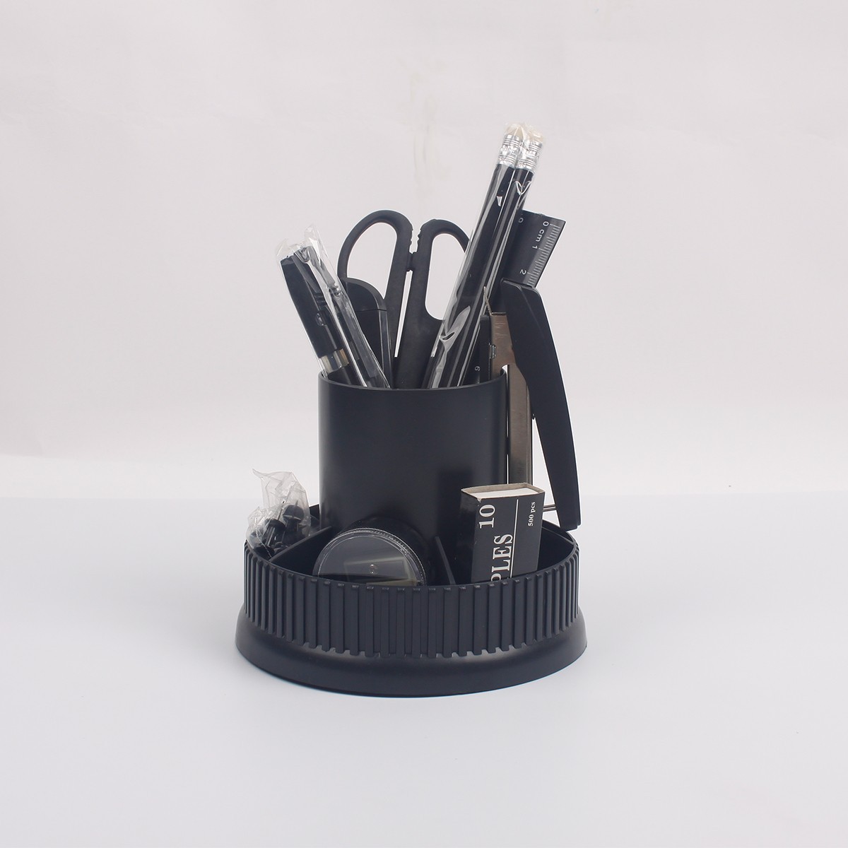 High Quality Space Saving Black Multi Compartment Office School Supply Desktop Desk Organizer Set With Basic Stationery