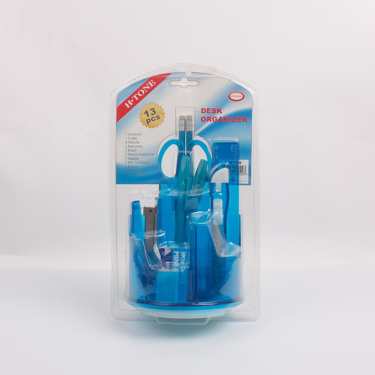High Quality Space Saving Black Multi Compartment Office School Supply Desktop Desk Organizer Set With Basic Stationery