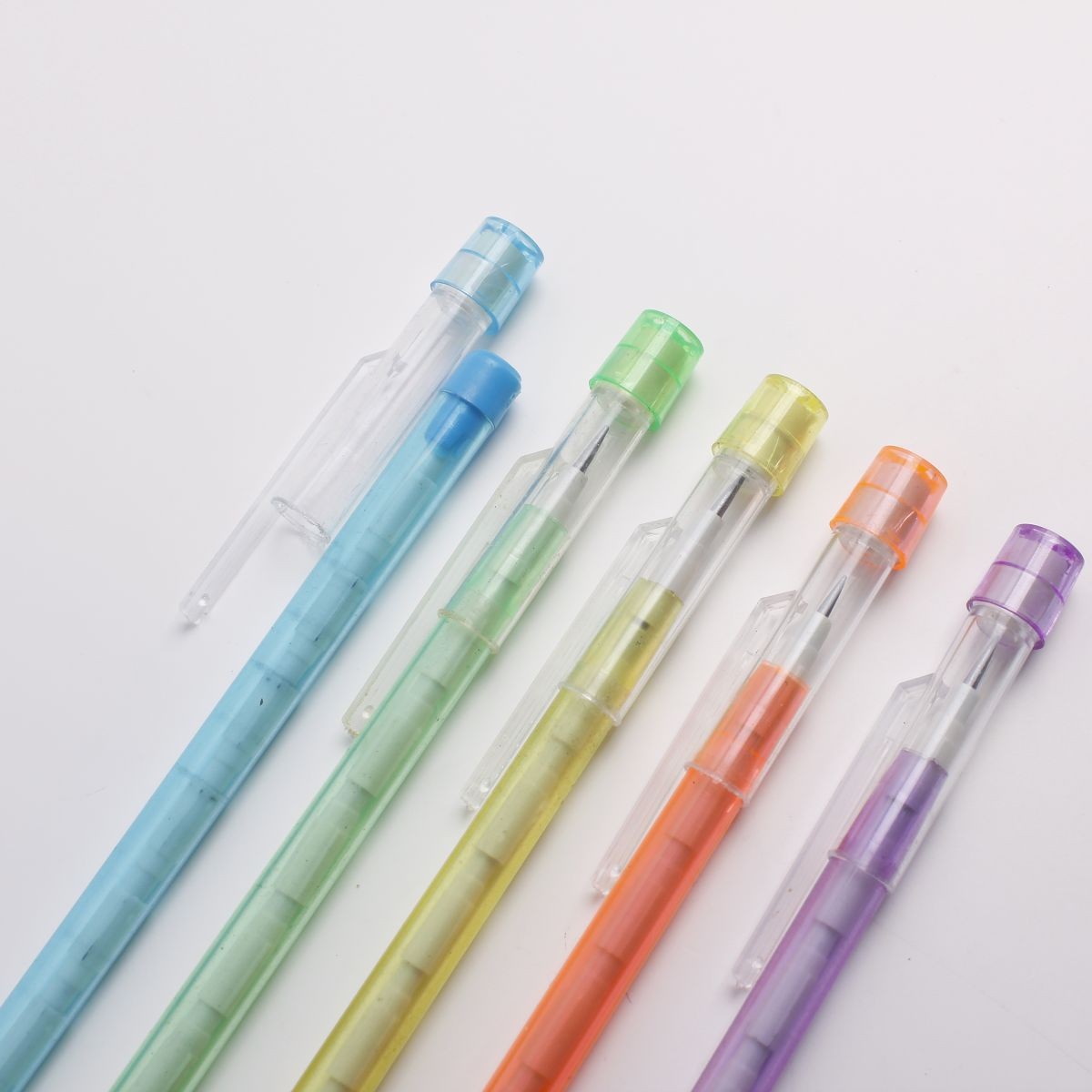 High Quality Plastic 6-9 Tips Translucent Multi Point Push Fun Pencils Novelty Stationery Gifts Bullet Stackable Pencil
