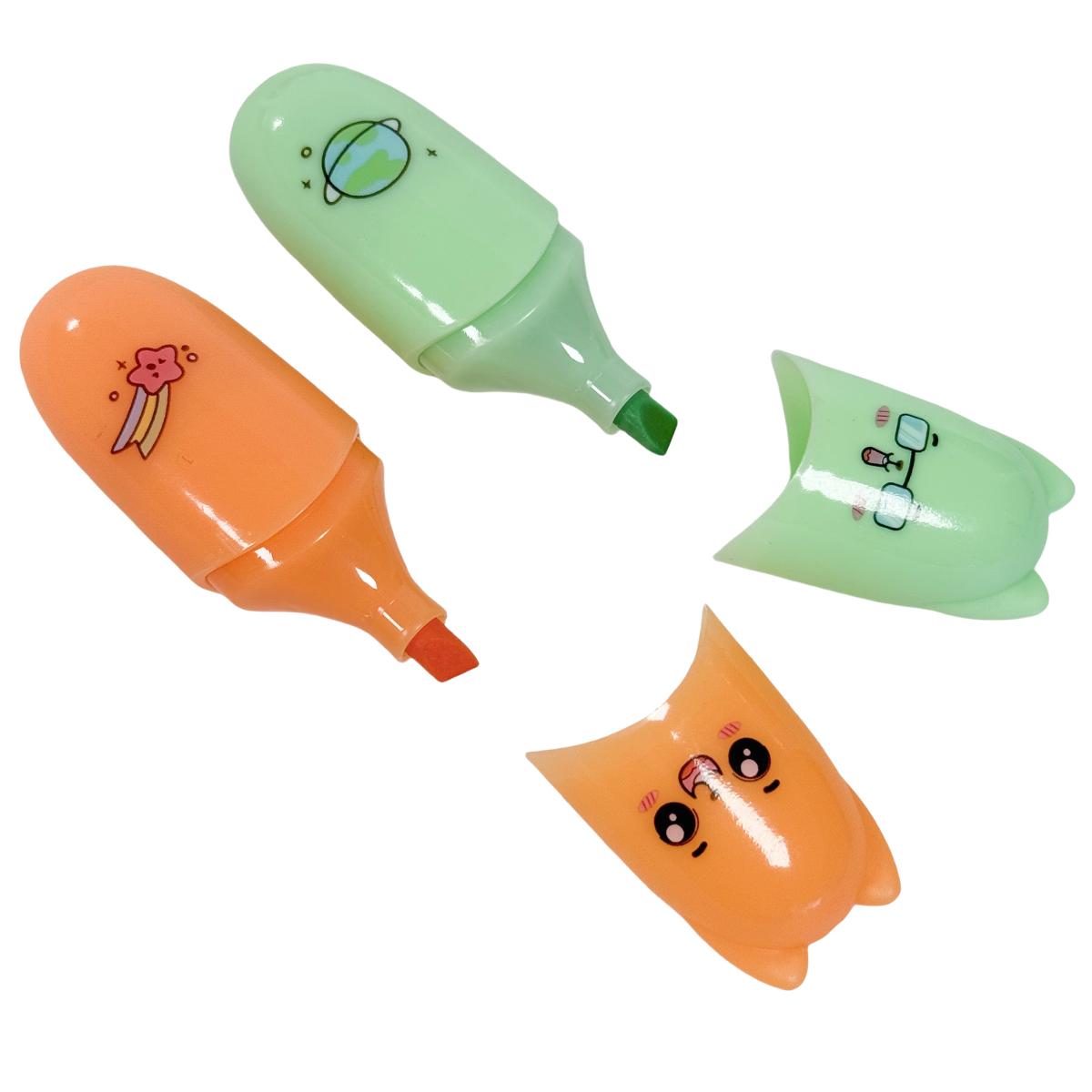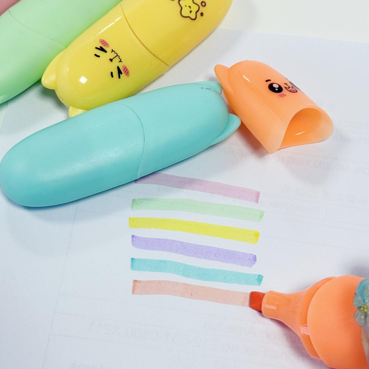 Custom Logo Pink Mini Highlighter Oblique Brush Tip 6 Color Water-Based Ink Cute Shape Marker Bulk Order School Supplies Set