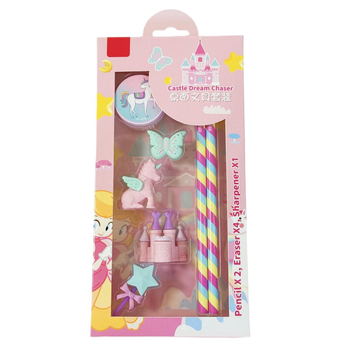 Best-Selling Novel Stationery Set for Girls Pink Dream Castle with Beautiful Unicorn Customizable Rubber Pencil Set