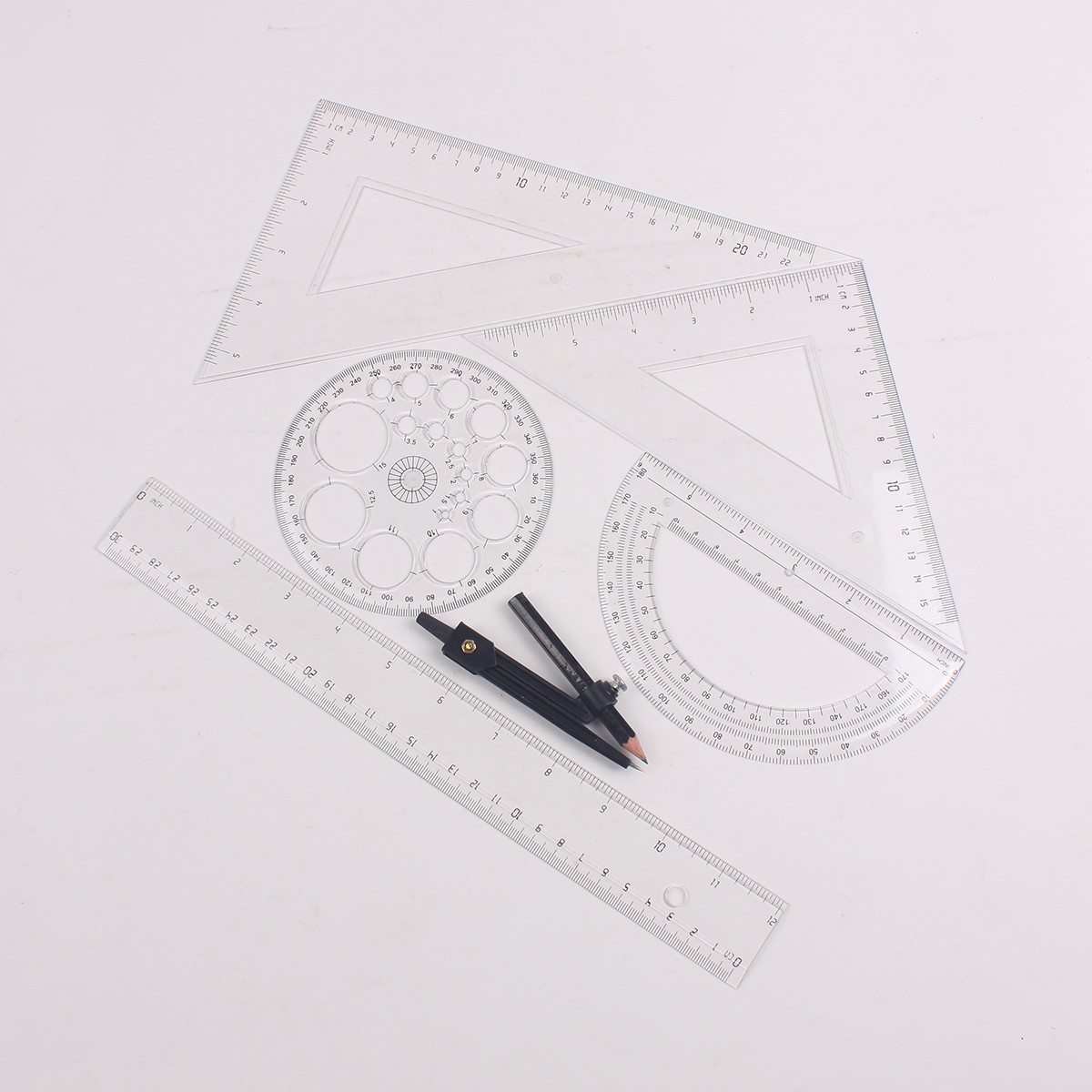 Custom Logo Wholesale 30cm Clear Plastic Geometric Ruler Set for School Stationery Supplies Kids 6pcs Ruler
