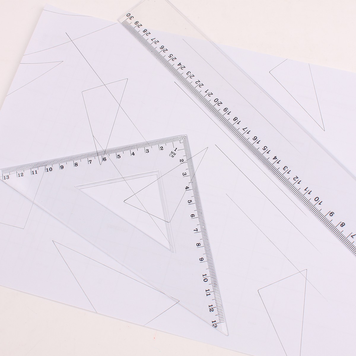 Custom Logo Wholesale 30cm Clear Ruler Set for School Stationery Supplies Kids 5pcs Ruler Set